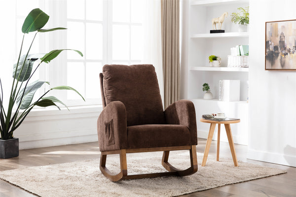 Pick patterns and textures in the same color. In this bedroom, although we used different styles of furniture, we kept the same beige and brown colors. For example, this coffee rocking chair completely agrees with chocolate color style. Perfect ergonomic design provides you with the most comfortable body support. Side pockets can also hold small items including cell phones and books.