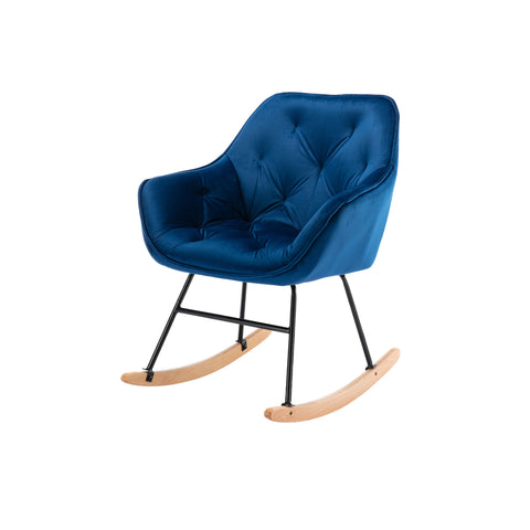 The upholstery material of this accent chair is velvet fabric.Built with an upholstered velvet shell, a dark metal frame and a bentwood base, this rocking chair is a modern statement piece, bringing mid century style to your home.